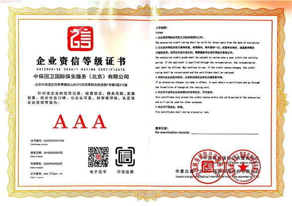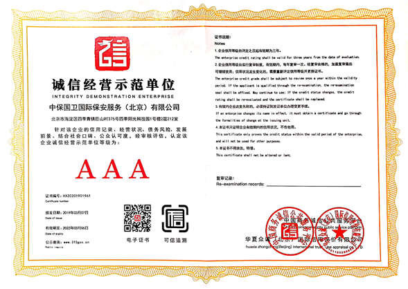 中保國(guó)衛(wèi)國(guó)際保安服務(wù)(北京)有限公司,屬中保國(guó)衛(wèi)集團(tuán)旗下子公司。能全方位的為大型客戶提供優(yōu)質(zhì)的安保、押運(yùn)服務(wù),是集人防和技防于一體的新型正規(guī)化綜合安保押運(yùn)服務(wù)企業(yè),提供人防、物防、技防、聯(lián)網(wǎng)報(bào)*、非武裝押運(yùn)等安防相關(guān)的一站式服務(wù)。 公司在國(guó)內(nèi)多省設(shè)立有分公司及分支機(jī)構(gòu),著重提升安全押運(yùn)、智能技術(shù)押運(yùn)及安全技術(shù)防范相關(guān)的服務(wù),業(yè)務(wù)范圍覆蓋全國(guó)一、二線城市、港澳地區(qū)以及海外地區(qū)。安保方面主要為政府機(jī)構(gòu)、金融機(jī)構(gòu)、企事業(yè)單位、醫(yī)療衛(wèi)生、高等院校、工業(yè)園區(qū)、大型商場(chǎng)、高檔住宅、智能商務(wù)樓、大型活動(dòng)提供門(mén)衛(wèi)、守護(hù)、巡邏、押運(yùn)(非武裝)、安全檢查、保安特勤、私人護(hù)衛(wèi)、消防中控、安全技術(shù)防范、遠(yuǎn)洋護(hù)航等全方位服務(wù),同時(shí)面向國(guó)際市場(chǎng),為中資企業(yè)在“一帶一路”沿線國(guó)家投資提供境外安保服務(wù)。 >> 更多內(nèi)容 |
